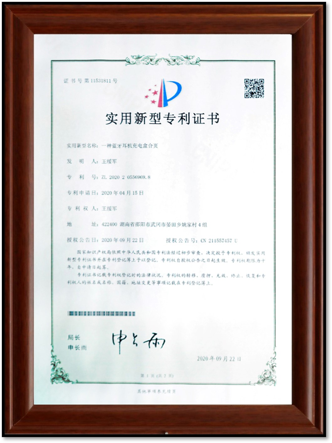 • 實(shí)用新型專利證書